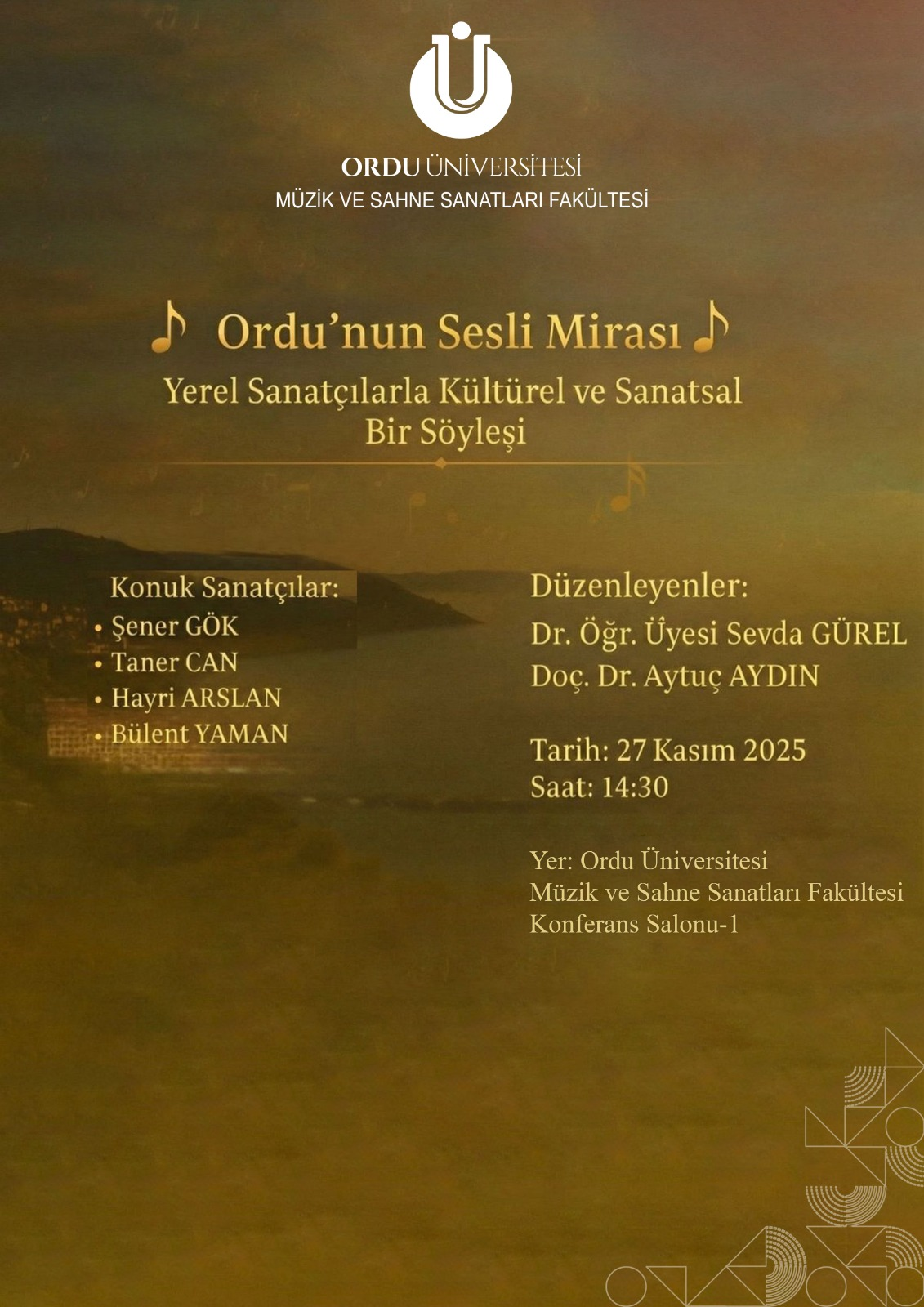 Yer: Ordu Üniversitesi Müzik ve Sahne Sanatları Fakültesi Konferans Salonu - I