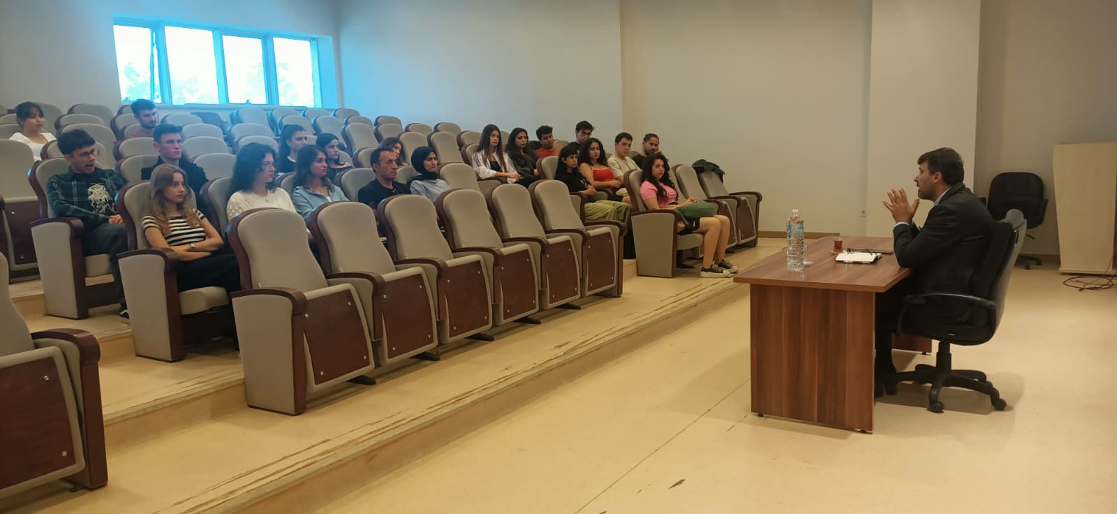 Buluşmada konuşmalarını gerçekleştiren Fakültemiz Dekanı Prof. Dr. İrfan Karaduman, öğrencilerimize Fakültemizin akademik ve idari yapısı, eğitim-öğretim süreçleri, mevcut fiziki olanaklar ve yıl içerisinde planlanan sanatsal ve kültürel faaliyetler gibi konularda bilgi vermiştir.